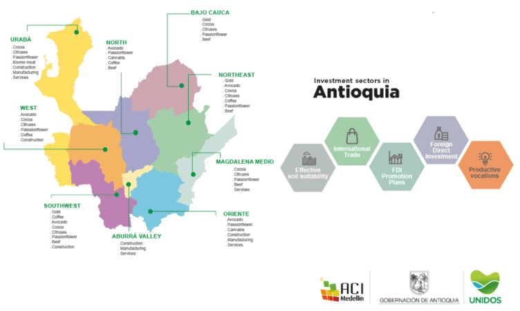 We have eastern Antioquia where our José María Córdova international airport is located, there we also find very diverse soil and we are promoting all the exploration in medicinal Cannabis, but also the Hass avocado, passionflower, mango, vegetables. This is how our territory is made up, we also have a sub-region that I forgot, the Occident of Antioquia. From the Occident of Antioquia, we have very agricultural locations and we also have a mining presence so we think of it as an important logistics corridor for the development that we are going to have in Urabá.