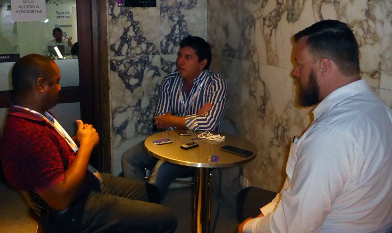 Photo: Loren Moss of Finance Colombia sat down with Jorge Hurtado and Christopher Bolin of Absolute Software to discuss data security during Andicom 2016. (Photo Credit: Finance Colombia)