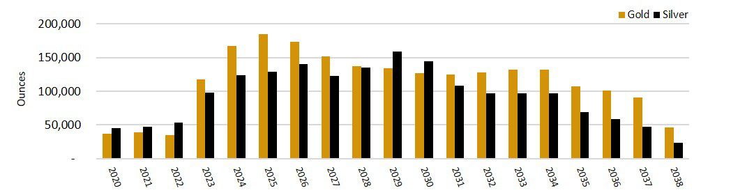 - Production totaled 5,901 ounces of gold and 9,012 ounces of silver in the first quarter of 2020 compared with 6,215 ounces of gold and 9,839 ounces of silver in the first quarter of 2019.