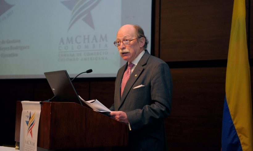 Photo: Camilo Reyes, the former foreign minister of Colombia and outgoing head of the Colombo American Chamber of Commerce (AmCham), speaks at an event in Bogotá. (Credit: Jared Wade)