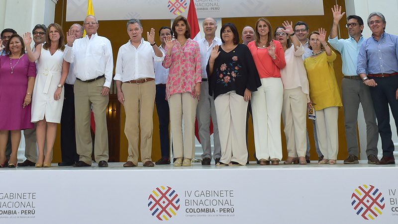 Photo: Colombian President Juan Manuel Santos and Peruvian President Pedro Pablo Kuczynski at the IV Gabinete Binacional Colombia-Perú. (Credit: Colombian Ministry of Commerce, Industry, and Tourism)
