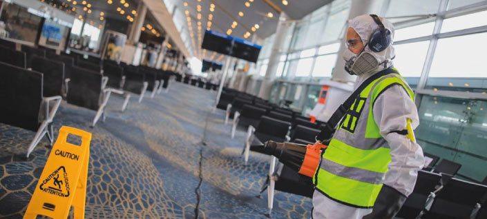 Photo of El Dorado International Airport disinfection courtesy MinSalud