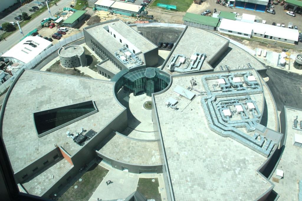 The Centro de Gestión Aeronáutico de Colombia (CGAC), or Aeronautics Management Center of Colombia (pictured above), also part of the construction Project, is a 9,355 square meter (100,696 square feet) circular complex consisting of six interconnected buildings, including integrated power generation, air conditioning, and water supply. A fortified tunnel connects it with the control tower.