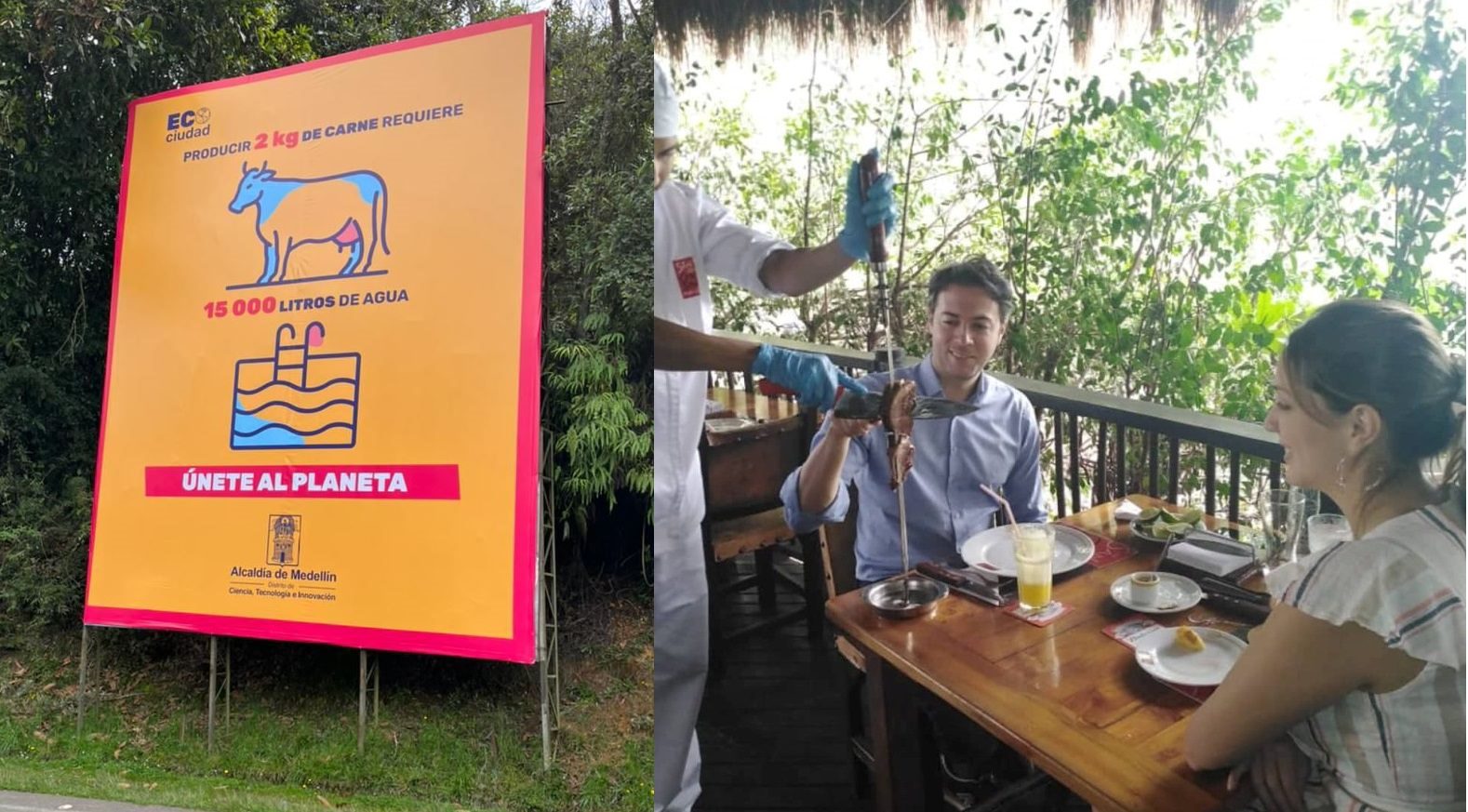 Above photo: ¡Vamos a vivir sabroso! Daniel Quintero’s anti-meat campaign, Daniel Quintero ready for steak. (Photos: Twitter account of José Félix Lafurie)
