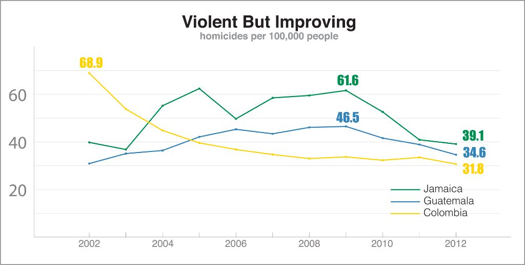 Despite the decrease, Jorge Restrepo, director of of Colombia-based conflict analysis resource center CERAC, told local news outlet RCN that the country still has a lot of work to do to become safer. He noted that United Nations figures cite a global (and U.S.) homicide rate of around 5 killings per 100,000 people and that Latin America leads to world with more than six times that rate.