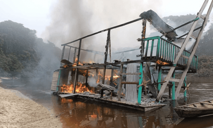 In 2021, Yanomami in Palimiú put up a barricade in the Uraricoera and stopped a speedboat full of miners. Yanomami youth carried away some 1,000 liters of fuel before turning the boat around. Their actions were in retaliation for the drowning of a child knocked over by a mining boat’s wake, according to the report by Hutukara Yanomami Association and the ISA.
