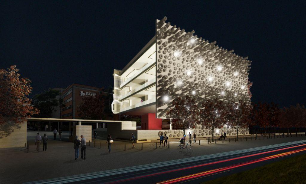 Above rendering (courtesy Grupo Argos): the new Centro Argos Para La Innovacion being built on EAFIT’s Campus