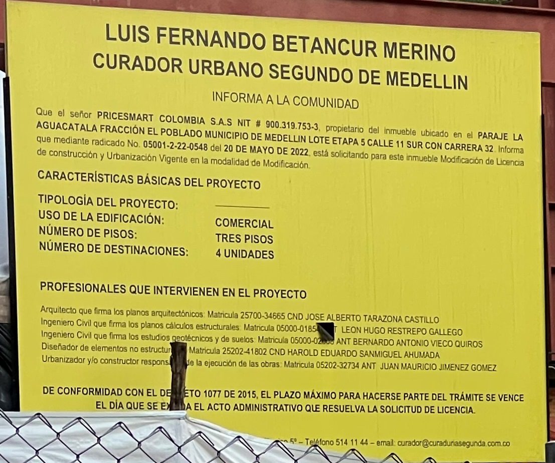 In Colombia, a publicly viewable sign must be displayed vat construction sites providing property & permitting details. Pricesmart’s appears to be in order. (photo: Loren Moss)