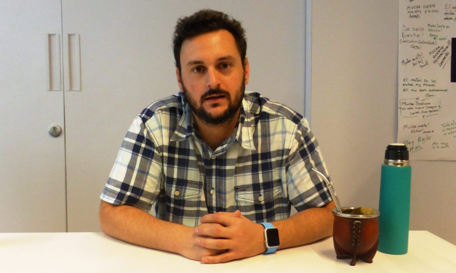 After UruIT opened for business in Medellín’s Ruta N technology complex, Finance Colombia’s Loren Moss was first on the scene. He recently sat down to to speak about the company’s expansion with UruIT’s key executive in Colombia, Marcelo Martinez (pictured above, with his Uruguayan Maté).