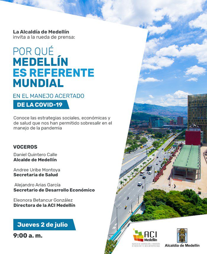 The mayor’s official press conference, canceled at the last minute, crowing “Why Medellin is the world’s standard in the assertive management of Covid-19” as cases in the city began to skyrocket