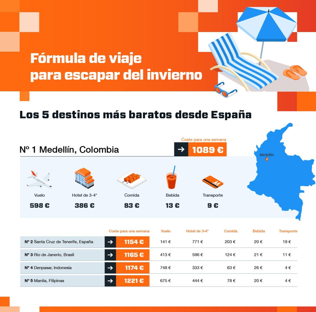 Spaniards looking to travel abroad to enjoy nice weather during the three coldest months of the year will not find any cheaper option than Medellín, according to an analysis conducted by Kayak Spain.