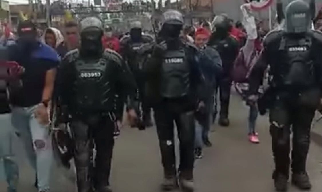 Cartagenita is a neighborhood of Facatativá, a small city in Cundinamarca just over an hour outside of Colombia’s capital of Bogotá. The notorious ESMAD is a detachment of Colombia’s national police trained specifically to deal with civil unrest: riot police. ESMAD stands for “Escuadrones Móviles Antidisturbios,” or Mobile Anti-disturbance Squadrons. They are deployed for everything from rowdy soccer matches to violent riots, but have a record of human rights abuses and police brutality.
