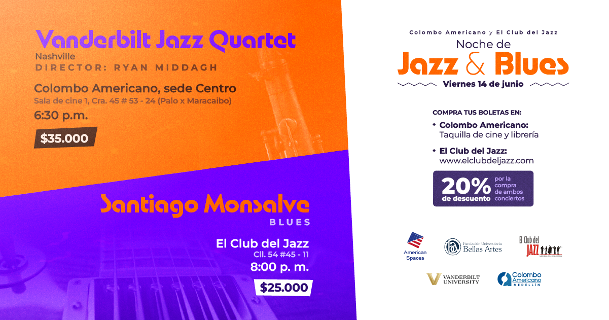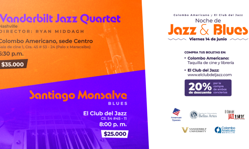 The Centro Colombo Americano will also have a presentation of Santiago Monsalve, who will give a blues concert, that same night, at El Club del Jazz.