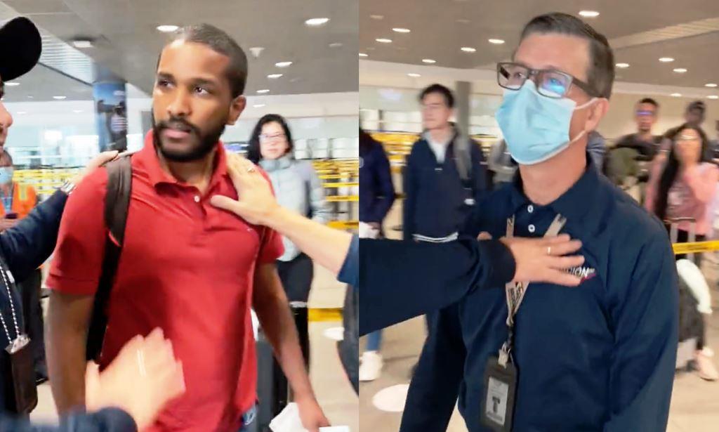 Part of a shocking scene was captured in video by one traveler going through immigration checks at Bogotá’s El Dorado International Airport which shows migration official Jaime Alonso Sánchez Cárdenas (above, right), a Colombian government functionary, attacking Juan Ramón Camarillo Peñaranda (above, left), a Colombian engineer.