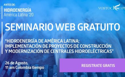 Free webinar August 26: Hydropower of Latin America: implementation of HPPs construction and modernization projects 11 am Colombia time Organizer: Vostock Capital Website: https://www.latinamericahydrocongress.com/en/webinar