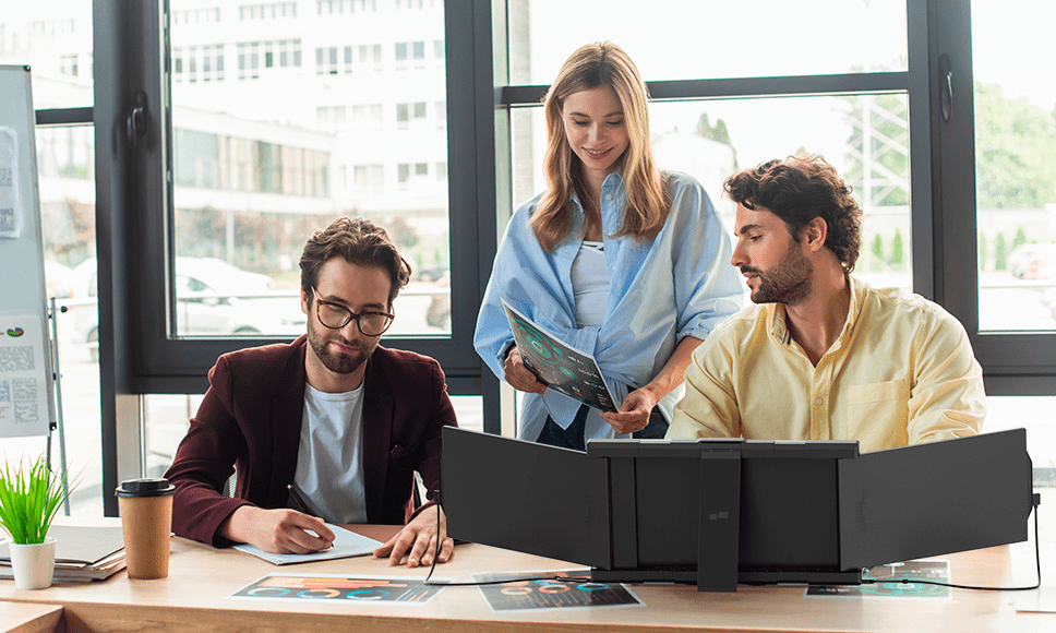 Consider a scenario where you’re brainstorming with your team during a virtual meeting. With the enhanced screen real estate it’s a could be very beneficial. For example, you can have a shared document open on one screen, a video conferencing platform with your team on another, and an instant messaging tool for quick exchanges on the third. This setup enhances better collaboration. It can be a helping hand for your team to brainstorm, discuss, and make decisions more effectively.