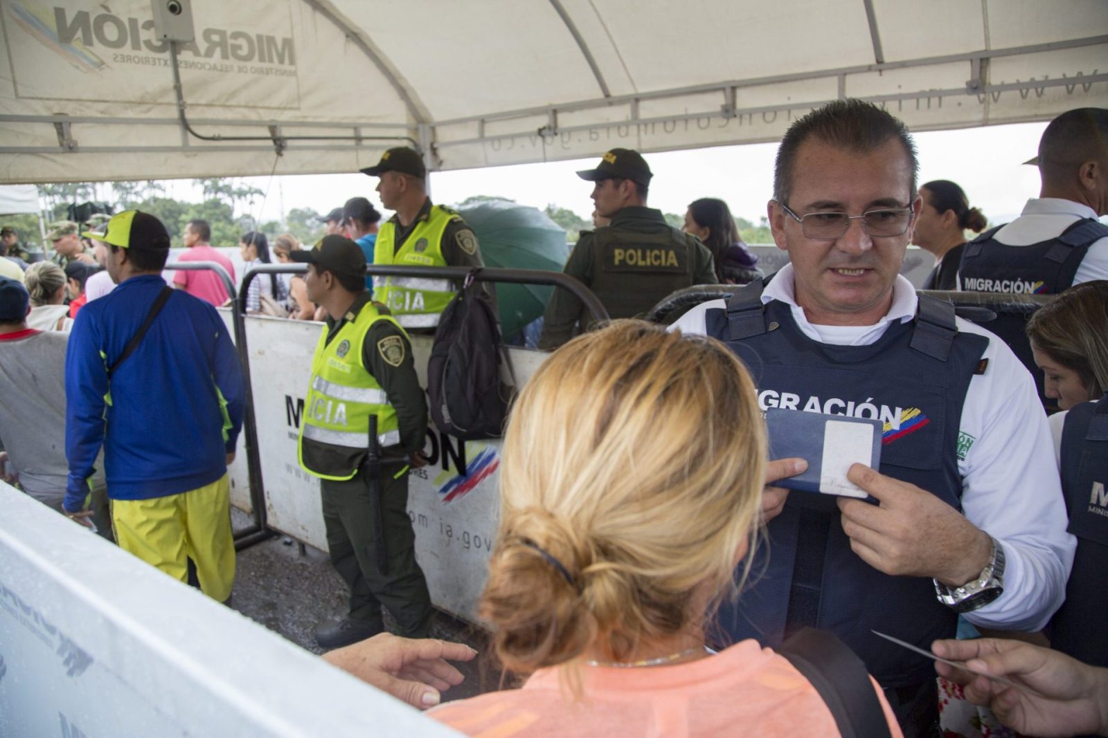 Photo: Migration officials work in Cúcuta, the border city where tens of thousands of Venezuelans cross into Colombia every day to flee the desperate social conditions and economic crisis occurring in their homeland. (Credit: National Police of Colombia)