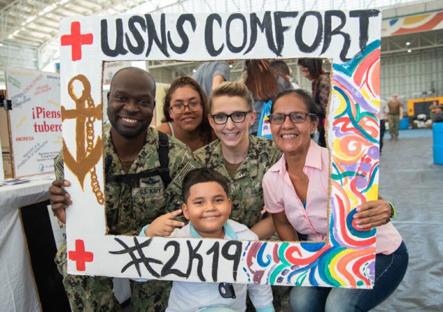United States Navy hospital ship USNS Comfort is in Santa Marta, Colombia this week giving free medical care to local Colombian patients, including several complex surgeries on the hospital ship, along with primary medical care in Santa Marta’s Coliseo Mayor Polideportivo sports coliseum. The US mission is supported locally by counterparts in the Colombian government including the Colombian military, the Santa Marta mayor’s office, the Colombian ministry of health and the governor’s administration of the Magdalena department. On the mission’s first day, US medics, nurses and doctors attended to hundreds of Colombians. The ship will be in port on this humanitarian mission all week.
