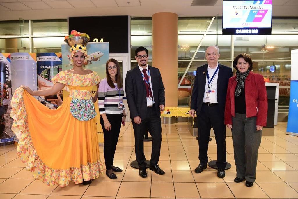 Above photo: From left to right starting after the costumed “palanquera”: Margarita Pacheco (Head of Airport, Viva Air), Emilio Parada (Key Account Manager LAP), Eduardo Fairen (CEO Viva Air Peru) and Pilar Lozano (Director of Procolombia for Peru and Bolivia)