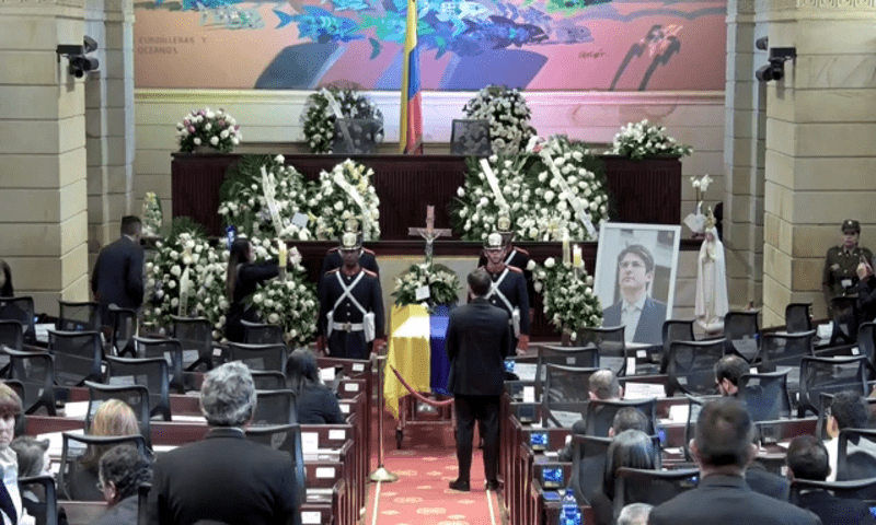 The posthumous tribute in memory of Senator Miguel Uribe Turbay, honoring his legacy and service to Colombia. Photo credit: Canal Congreso Colombia/YouTube.